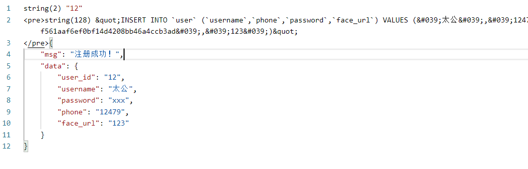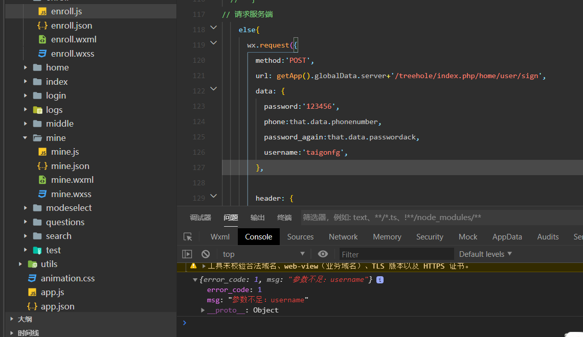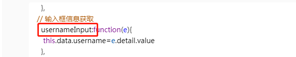 // pages/enroll/enroll.jsPage({data: {username:"",password:"",phonenumber:"",passwordack:"",},// 输入框信息获取usernameInput:function(e){this.data.username=e.detail.value},phonenumberInput:function(e){this.data.phonenumber=e.detail.value},userpassInput:function(e){this.data.password=e.detail.value},userpassackInput:function(e){this.data.passwordack=e.detail.value},// 跳转至登录gotologin:function(e){wx.switchTab({url: '../login/login'})},// 注册空信息校验regist:function(e){var that=thisif(that.data.username==''){wx.showModal({title: '提示',content: '请输入用户名',showCancel:false,success (res) {if (res.confirm) {console.log('用户点击确定')} else if (res.cancel) {console.log('用户点击取消')}}})}else{$return_data=array();$return_data['error_code']=4;$return_data['msg']='注册失败';$this->ajaxReturn($return_data);}}}public function login(){// 判断是否为空if(!$_POST['phone']){$return_data=array();$return_data['error_code']=1;$return_data['msg']='请输入用户名';$this->ajaxReturn($return_data);}if(!$_POST['password']){$return_data=array();$return_data['error_code']=1;$return_data['msg']='请输入密码';$this->ajaxReturn($return_data);}$User=M('User');$where=array();$where['phone']=$_POST['phone'];$user=$User->where($where)->find();var_dump($user);// 判断用户数据是否一致if($user){if(md5($_POST['password'])!=$user['password']){$return_data=array();$return_data['error_code']=3;$return_data['msg']='登录失败,密码错误!';$this->ajaxReturn($return_data);}else{$return_data=array();$return_data['error_code']=0;$return_data['msg']='登录成功!';$return_data['data']['user_id']=$user['id'];$return_data['data']['username']=$user['username'];$return_data['data']['phone']=$user['phone'];$return_data['data']['face_url']=$user['face_url'];$this->ajaxReturn($return_data);}}else{$return_data=array();$return_data['error_code']=3;$return_data['msg']='用户不存在请注册';$this->ajaxReturn($return_data);}}}bindinput?