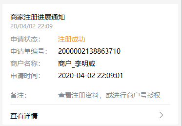 商家注册已经完成,但是没有可确认商户号,编号2000002138863710