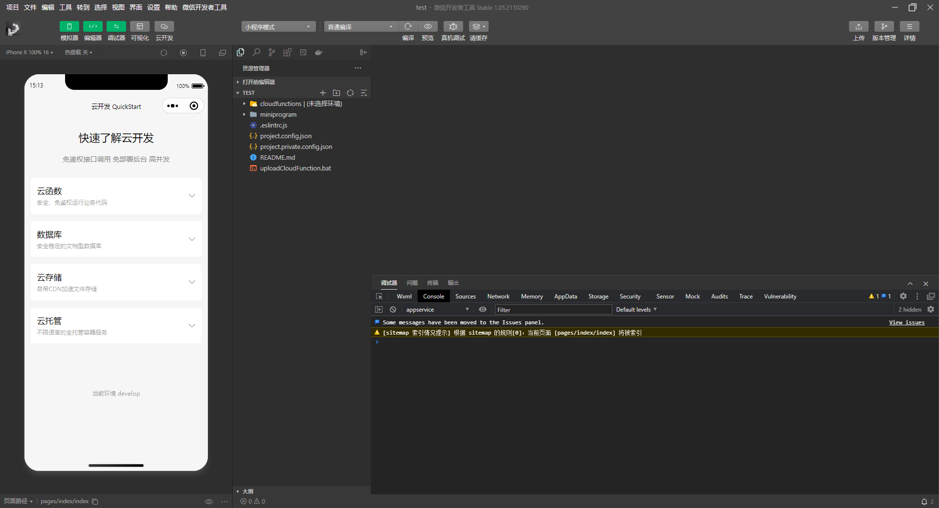 新建项目不选择云开发,创建好后在IDE里面,左上角有个云开发,点击开通 ,这样没有模板