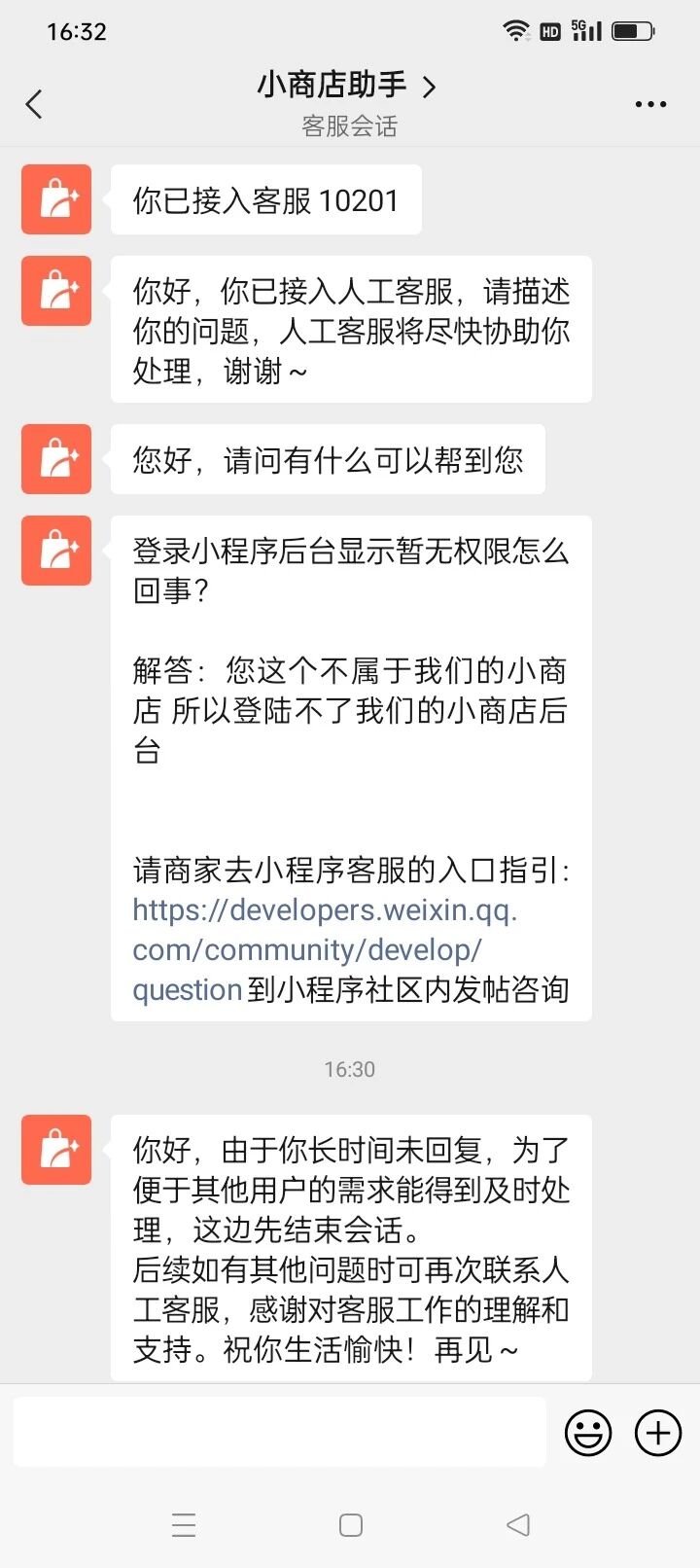 我通过账号登录小程序管理后台,显示用主微信扫码,扫码过后却显示暂无权限,我咨询了客服,她说不属于小商店,我想把这个小程序注销或解绑了,求解决办法