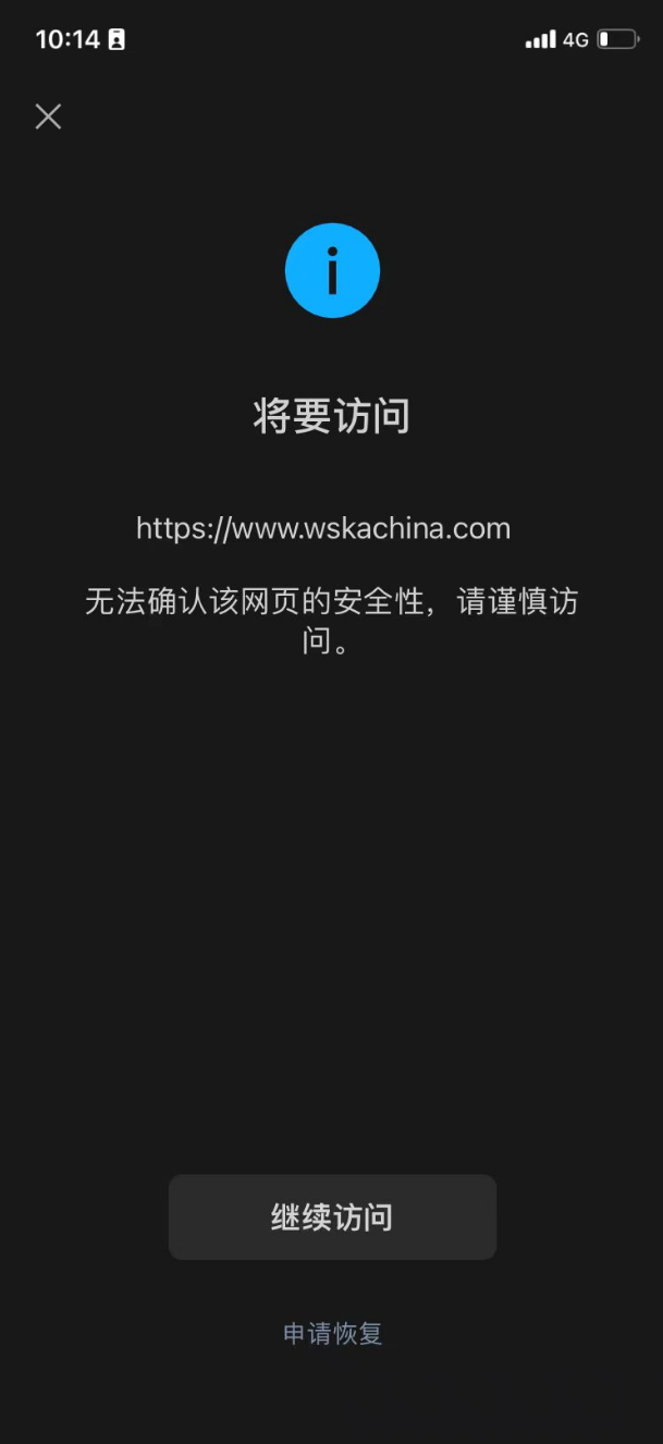 网站 www.wskachina.com 访问时,会提示 无法确认该网页的安全性,请谨慎访问。是企业的官网,没有违规元素。麻烦请处理一下。