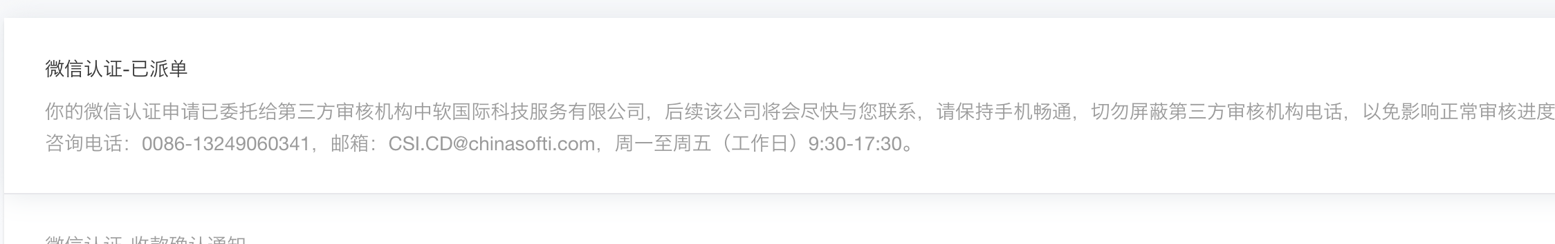 你好,认证的相关问题,请在微信--发现--小程序--搜索腾讯客服--选择业务进行反馈哈,后续会有相关人员及时为您处理问题,谢谢。请参考知识库提单腾讯客服:https://developers.weixin.qq.com/community/develop/doc/0002eefc664c1043cbbb531ea5b009