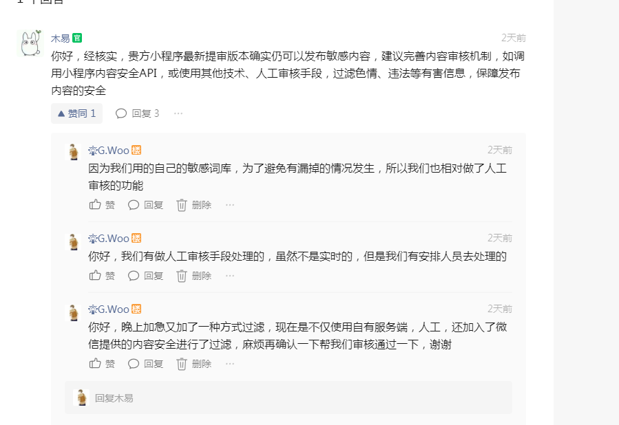 但是上一次我小程序敏感词的问题,其实已经做过人工审核的限制了,但是没有通过