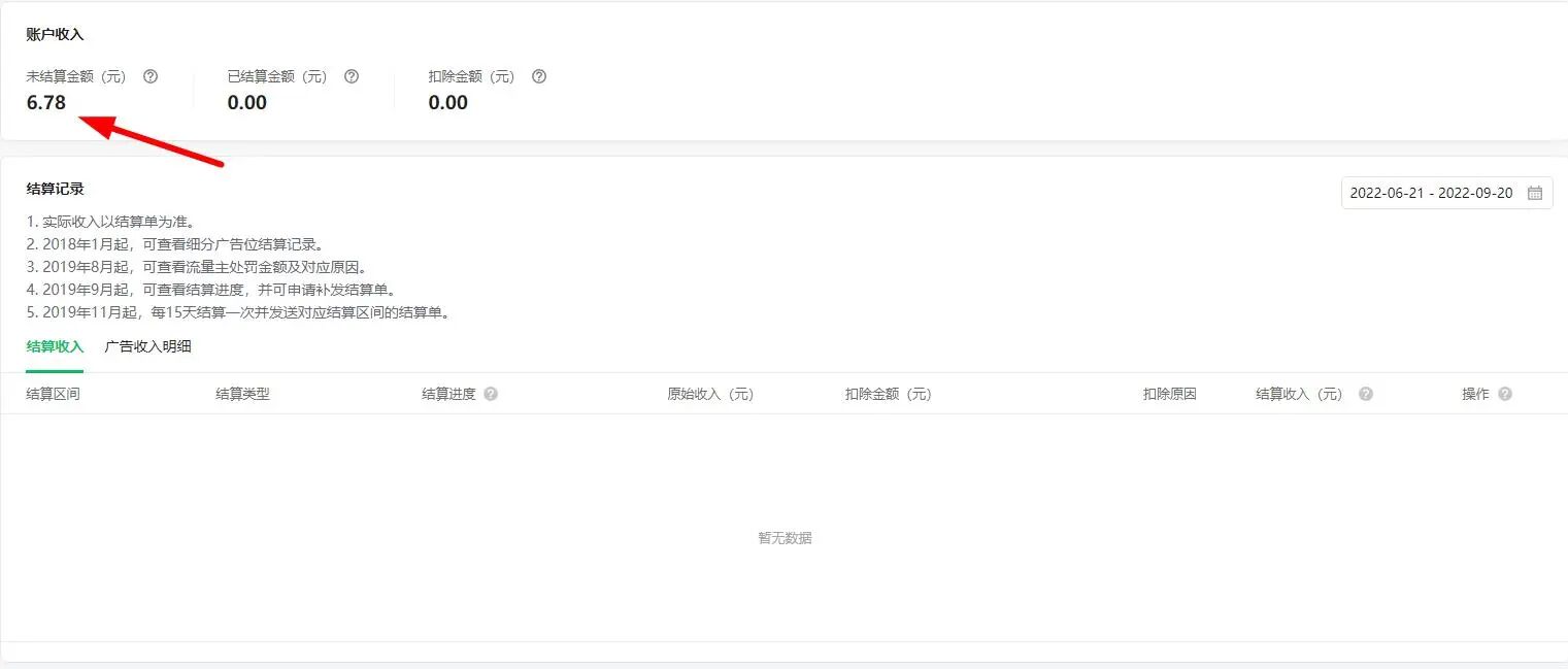 您好,平台上可以看到未结算金额的注释的,未结算金额是指未进入结算流程的收入。目前正在处理8月下半月的结算,建议后续留意下结算单的下发及后台结算状态,谢谢。