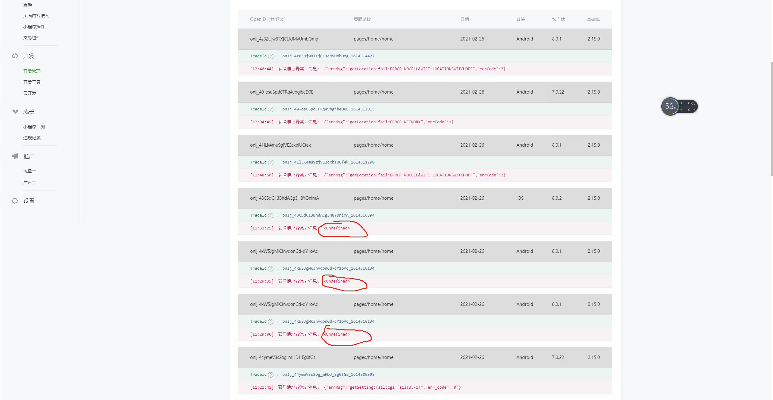 获取定位,有个别用户定位失败,而且错误信息没有任何提示,只是 <Undefined>,无法锁定定位失败原因,盼回复!!