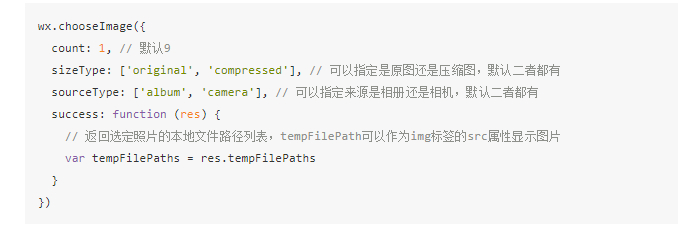 ,这是相关的文档的链接:https://developers.weixin.qq.com/miniprogram/en/dev/api/media-picture.html#wxchooseimageobject