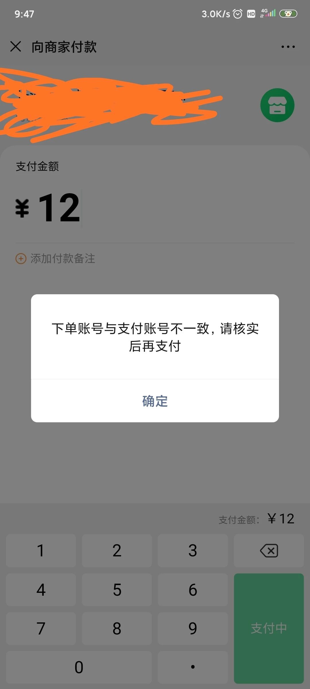 下单账号与支付账号不一致,请核实后再支付