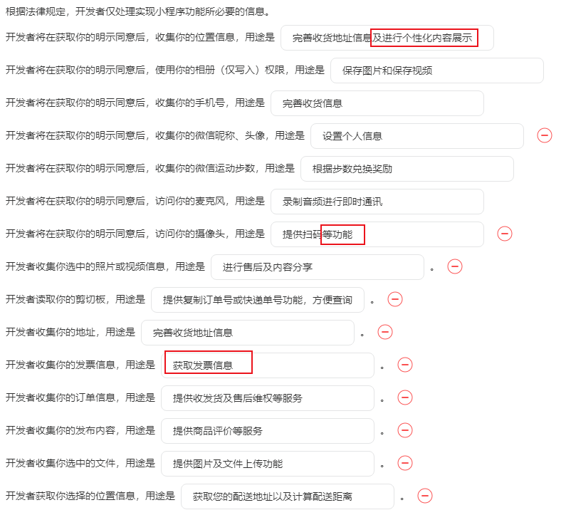 小程序的隐私指引原来是通过的,只是添加了一条就不给过了。是什么原因?哪一条有问题?
