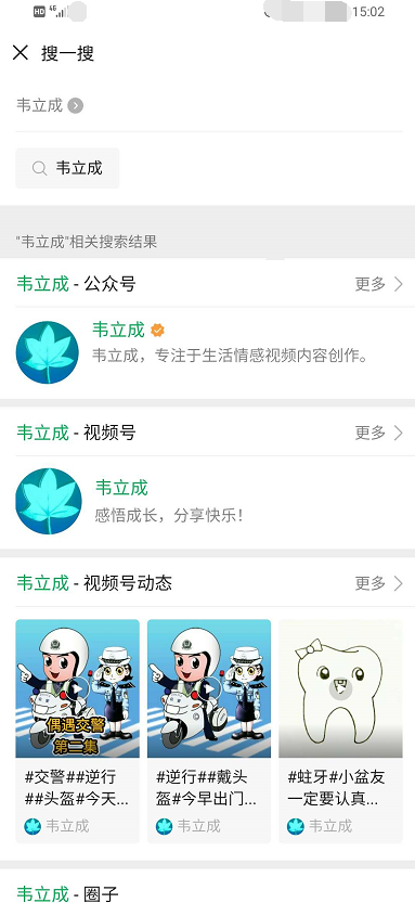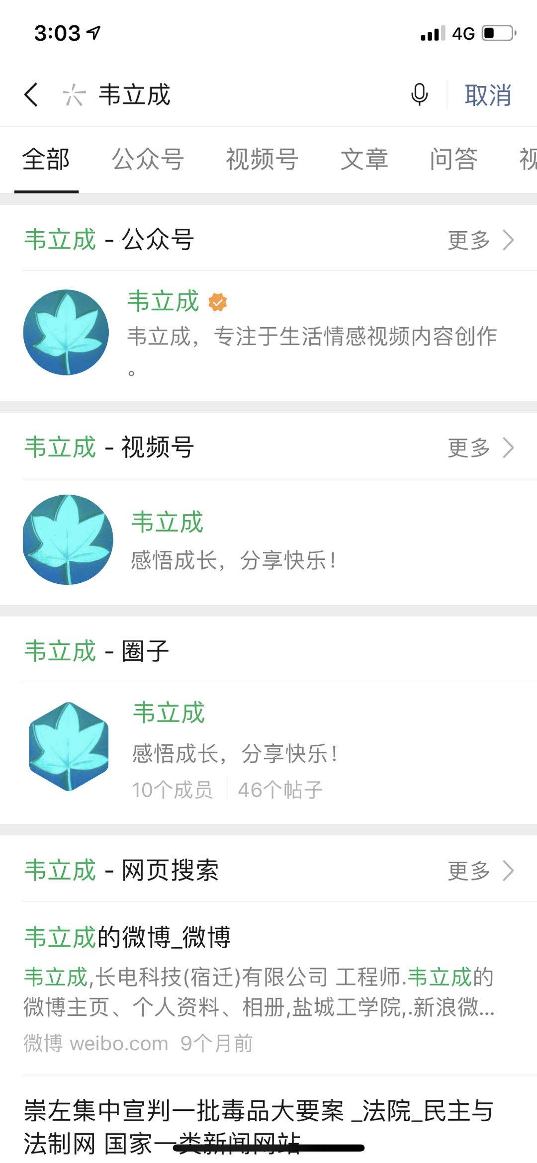 我的公众号/小商店/微信圈子,都叫韦立成,然后我用自己的微信号里搜一搜,能搜索到各种信息包括 视频号都出来了,但是别人在搜索的时候,居然显示空白,什么都搜不到,这个搜一搜不是针对信息进行搜索而是根据微信,看人来的?还是把我拉黑了???