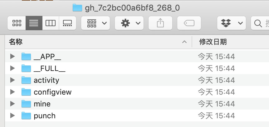 其中,activity, configview, mine, punch这些是小程序里面自定义的目录。