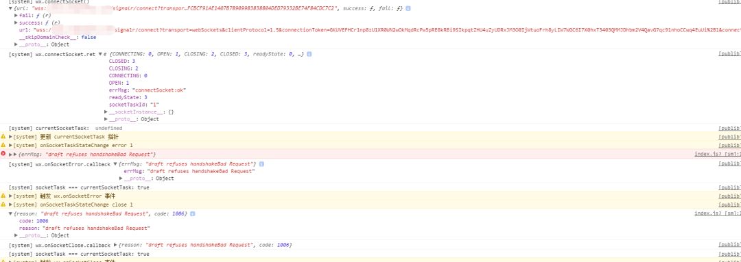 我们在公众号也是使用同样的配置,可以正常连接,开发者工具没问题,只有在Android真机上连接才会连接错误,错误信息: draft refuses handshakeBad Request