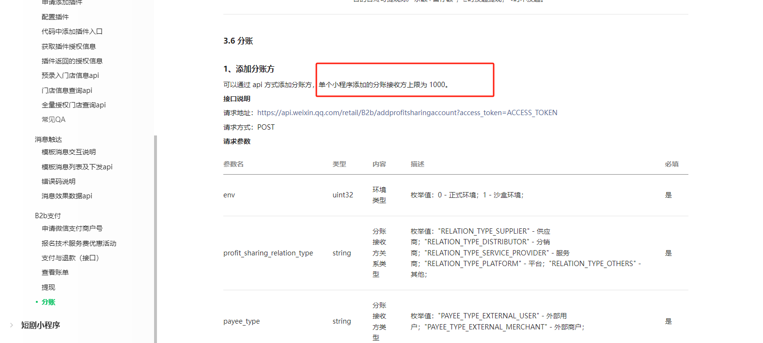 添加分账接收方: 小程序/开发/云托管/开发指引/微信支付/分账接口/添加分账接收方