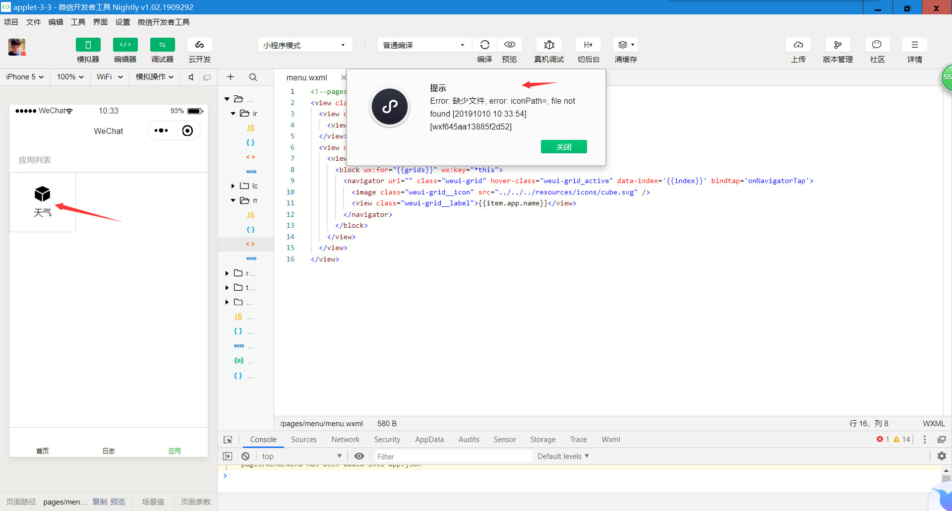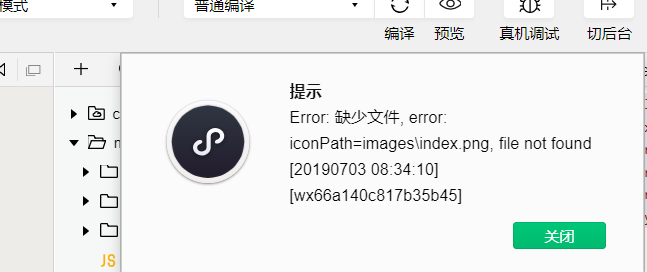 开发者工具预览时报错 iconPath="images\xx.png",file not found