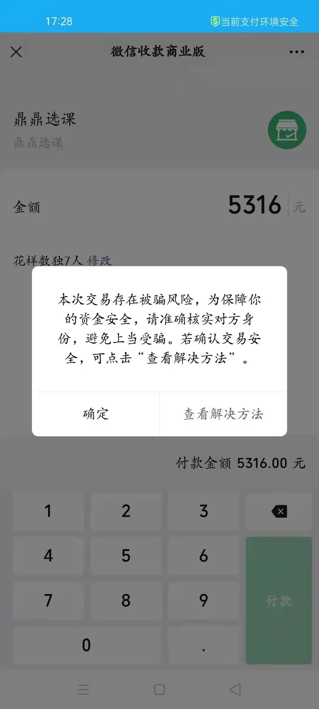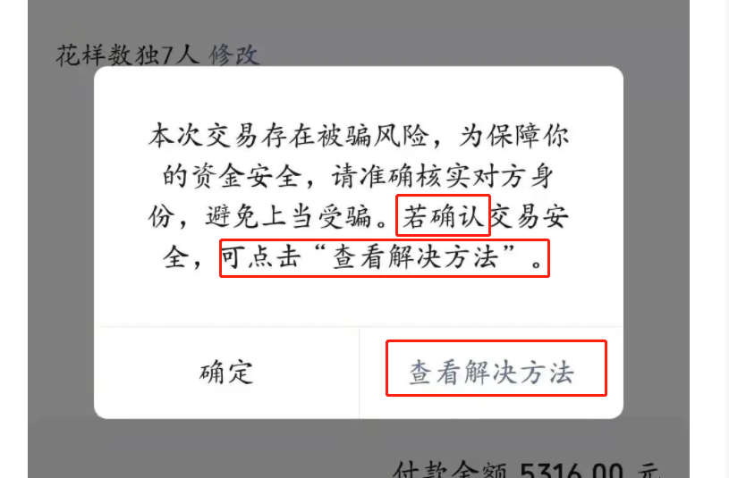 为什么给商户付款的时候会跳出来"本次交易存在被骗风险。。。"这种情况该如何处理?