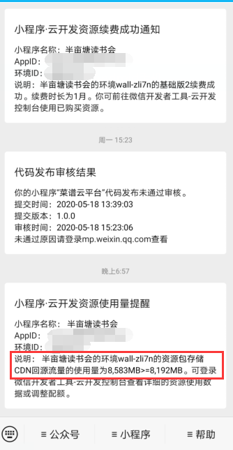说明:半亩塘读书会的环境wall-zli7n的资源包存储CDN回源流量的使用量为8,583MB>=8,192MB。