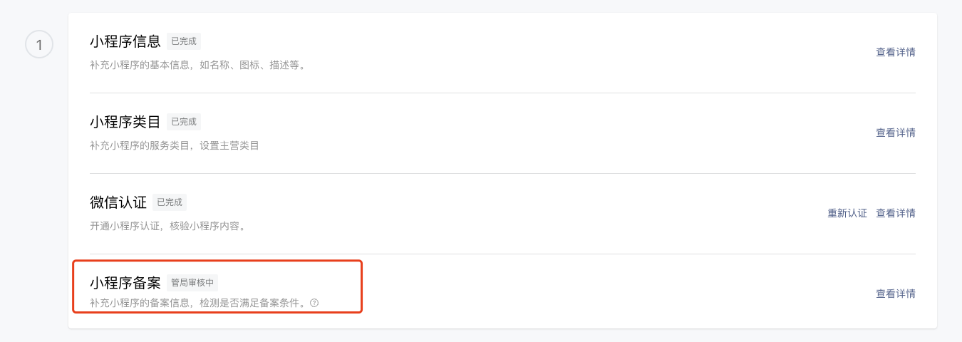 你好,核实该小程序appid:wx8d3f4bbcf0e8d8e3目前的备案进度提示为驳回待完善,可至【mp后台-首页/设置-小程序备案-查看驳回原因】查看,建议参考小程序备案驳回原因中的修改建议完成备案信息修改后,重新提交小程序备案。