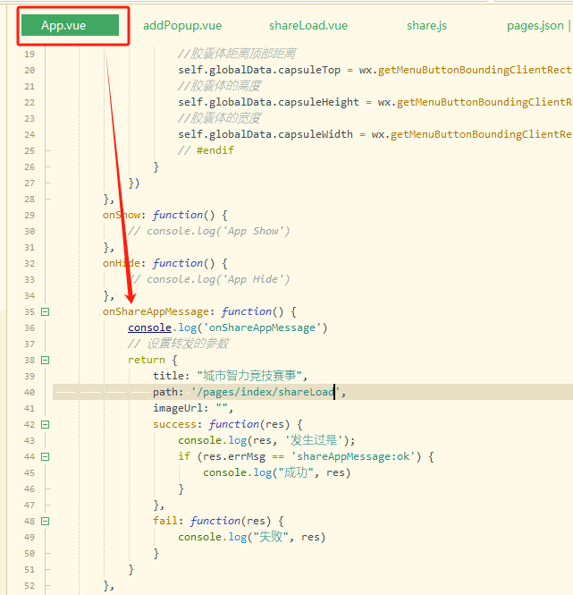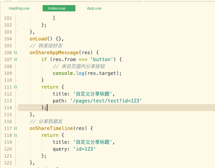 分享的处理函数是在页面里面设置的,比如我在首页 index.vue 设置,首页的转发按钮就会启用。
