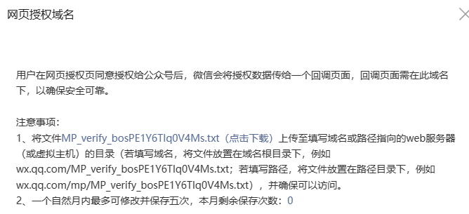 因需要回调的域名不止一个,所以在测试这个东西,没注意修改保存次数问题,导致现在在微信是打不开网页的。