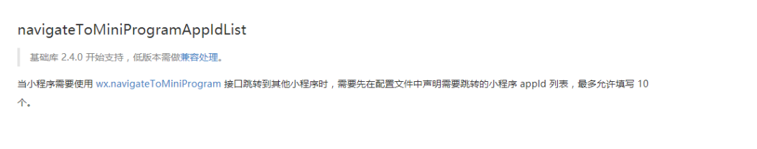 navigateToMiniProgramAppIdList 具体怎么配置呢,官方文档说的也不清楚
