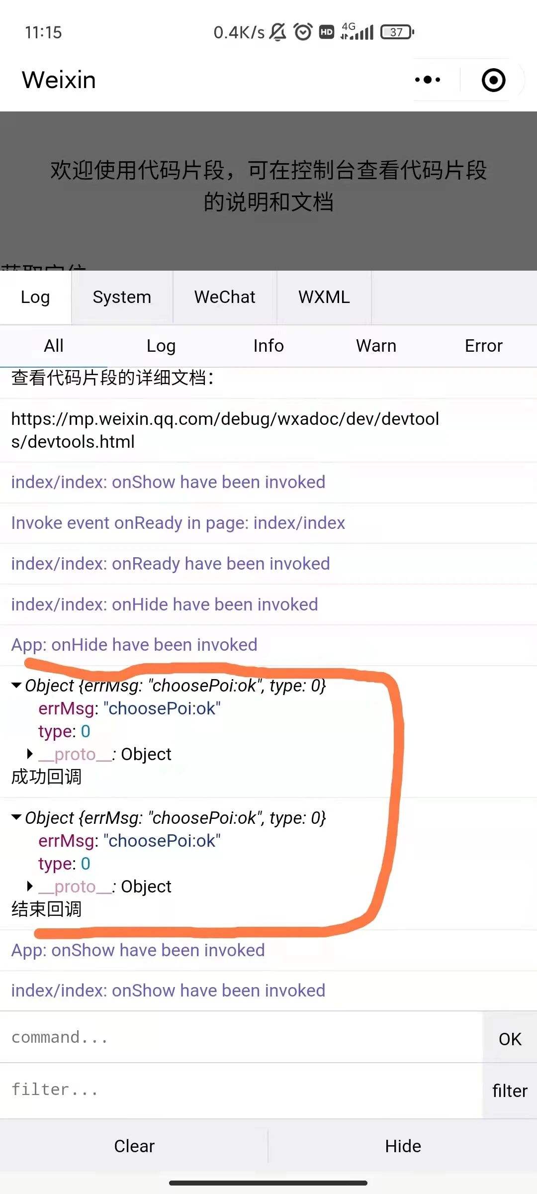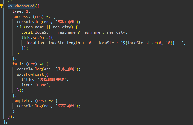 小程序调用wx.choosePoi,搜索框写一个新的地址创建,填写完创建信息点右上角完成,返回页面,安卓端的成功回调函数并没有返回创建成功的地址信息