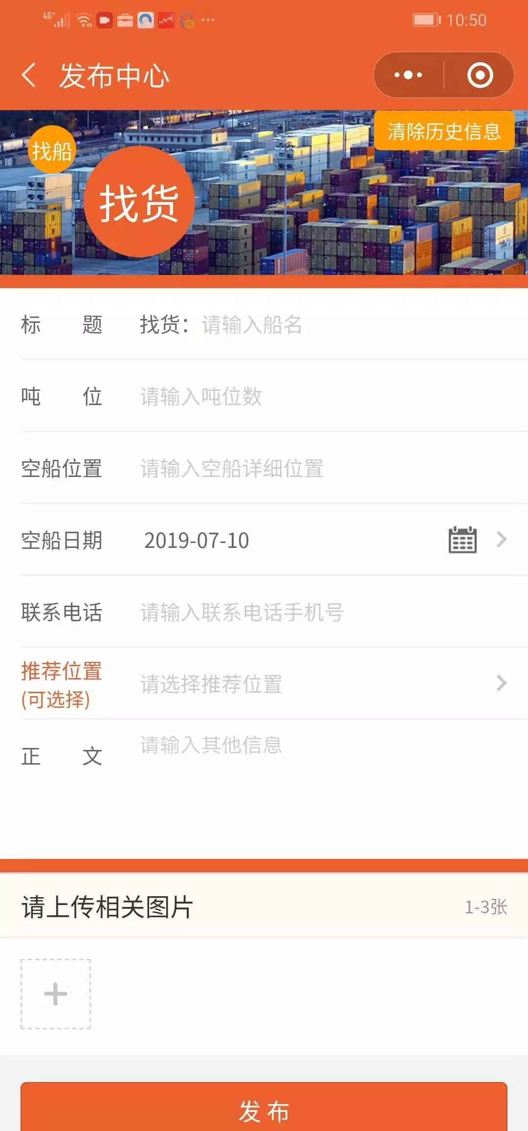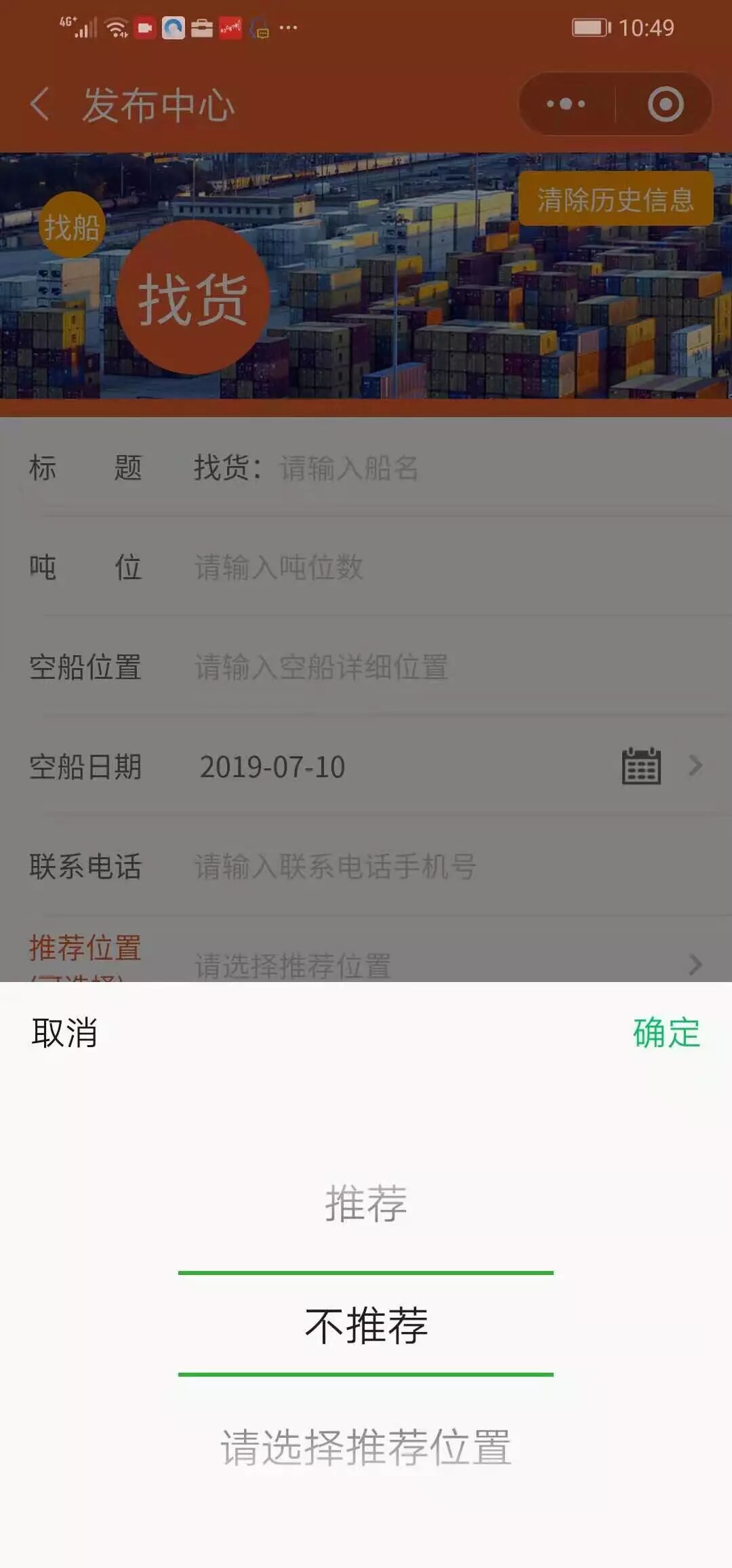另外,线上版本的发布中心,有一个用户自愿选择的推荐位置,是鼓励找船找货的供求双方,积极踊跃发布信息,谁先发信息,谁占位,占满就没有了。这个设计只是一个陈列的排序,不是虚拟商品,不涉及任何虚拟支付等内容,也没有违反《微信小程序平台运营规范》5.行为规范-5.13虚拟支付行为等相关规定