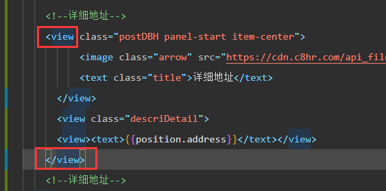 有办法像图二编辑器一样 鼠标点击到标签,自动显示标签结束位置在哪里吗
