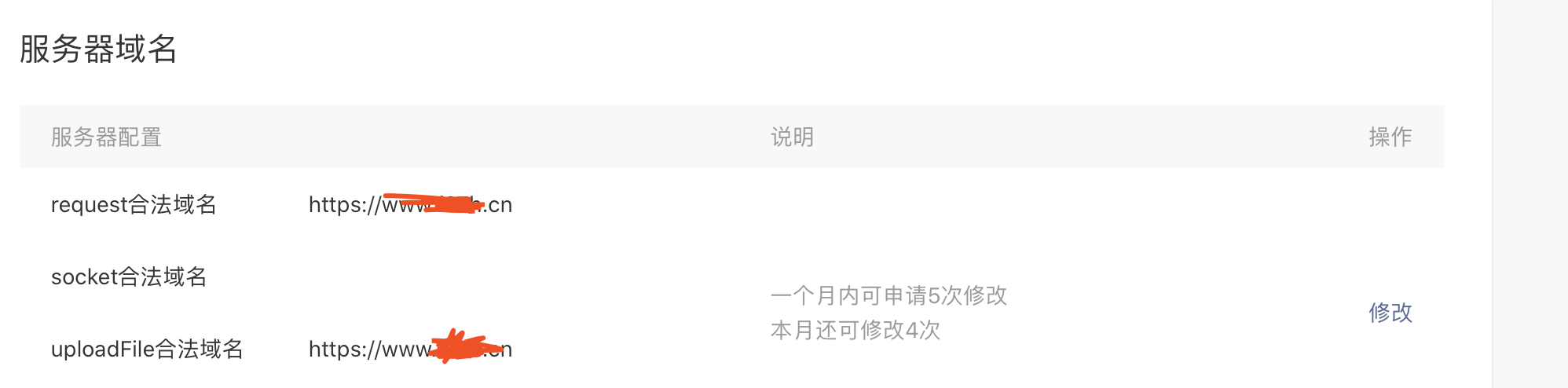 一个月可申请五次修改?兄弟你这截图是公众号的配置吧?小程序的是一个月50次修改。