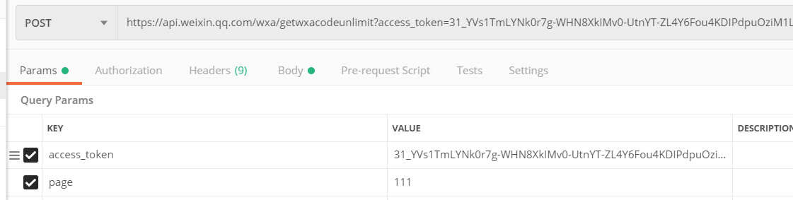 POST https://api.weixin.qq.com/wxa/getwxacodeunlimit?access_token=ACCESS_TOKEN