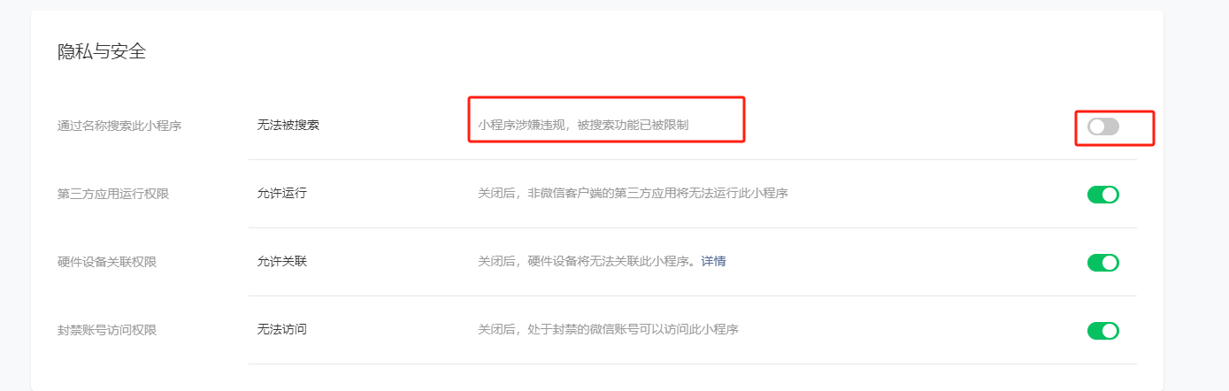 我都小程序只是长时间打不开,现在就被限制了搜索,现在重新发布了新版本,怎么解除限制?已经备案+认证了,但是这个限制还是没法去掉。这个是新版本的小程序入口小程序码: