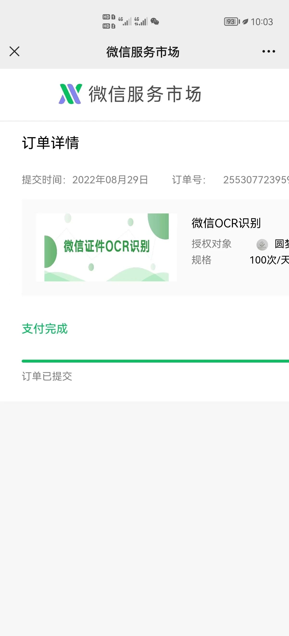 appId:wx446c922a555bfe1a,已经购买OCR识别服务:https://fuwu.weixin.qq.com/service/detail/000ce4cec24ca026d37900ed551415