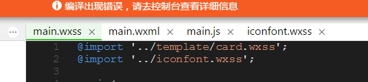 这样直接报错,(其实 ./iconfont.wxss 这样引入时不会报错,只有在 调用这个类名的时候才会报错)
