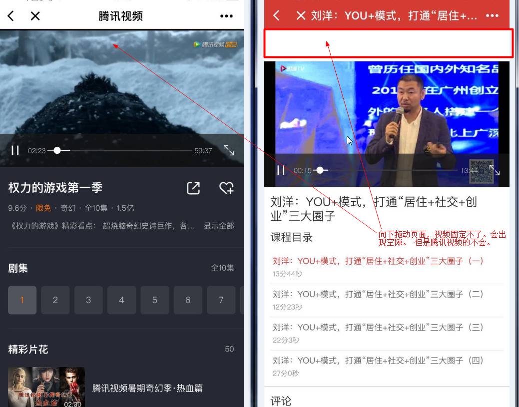 如何固定住video元素,页面下拉不会出现 空隙。