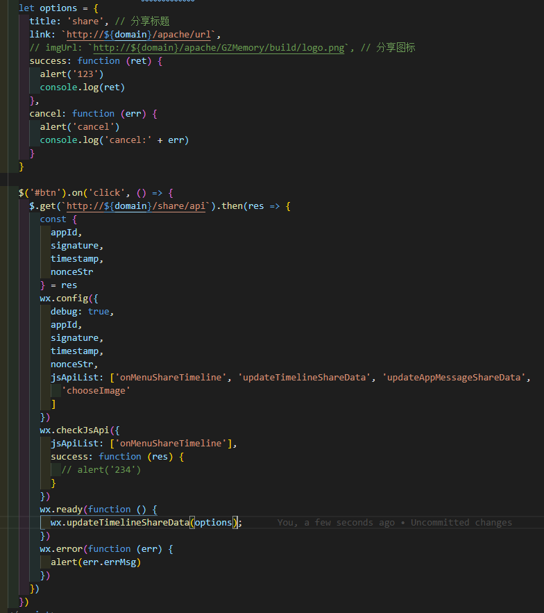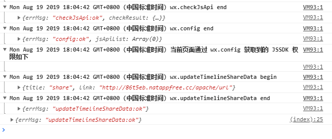 请问一下,这个代码这样写,为啥结果全是ok,但是就是没有调起分享的接口啊?