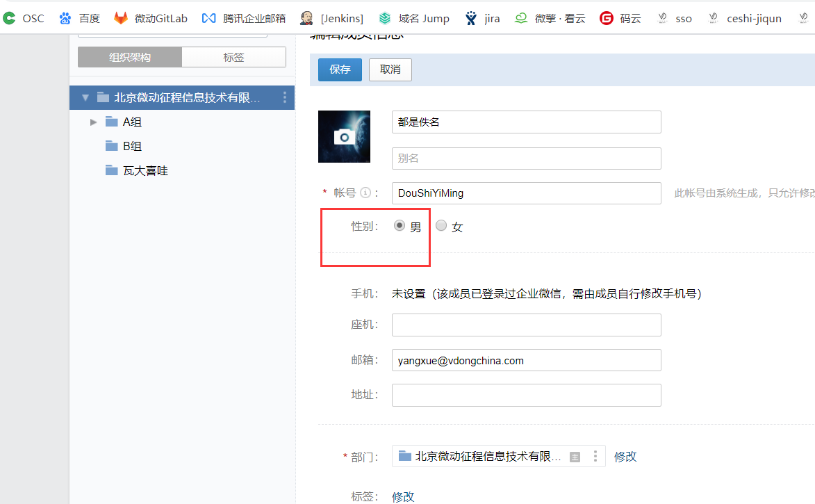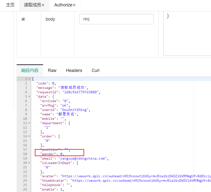 企业微信读取成员接口获取到的成员性别和在后台创建时的性别有差异。如图