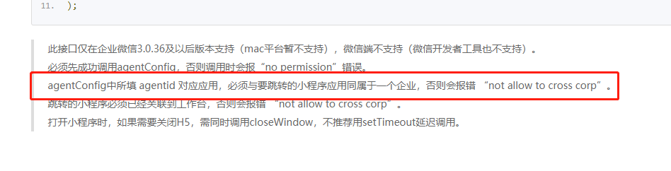 2.跳转小程序的时候返回 err_msg: "launchMiniprogram:fail_not allow to cross corp"