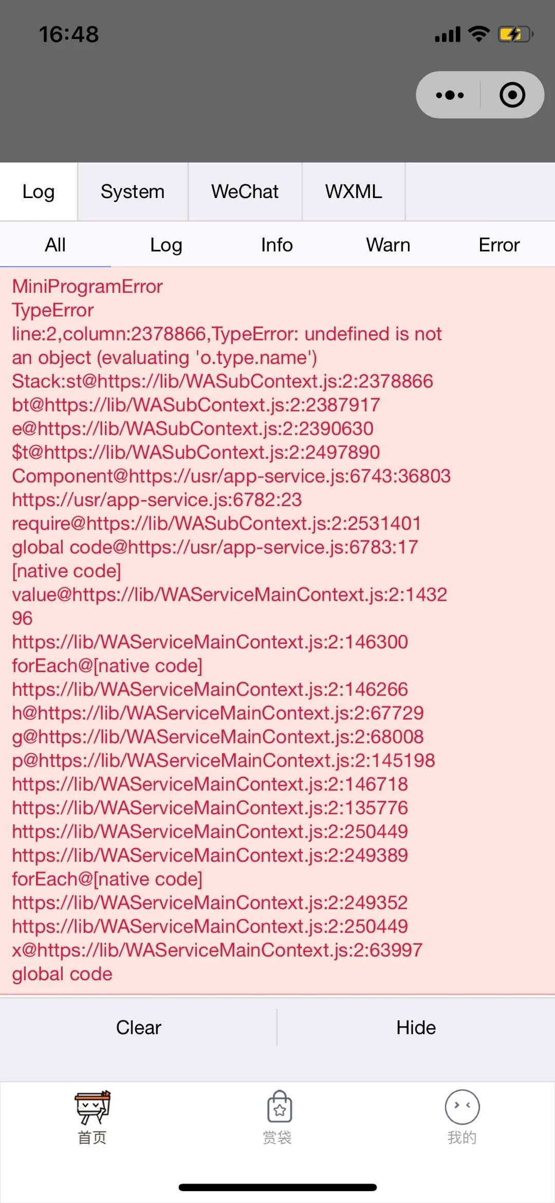 该微信小程序在微信端打开正常,但是分享到企业微信打开 页面空白,只能看到底部tabbar ,报错如下 :