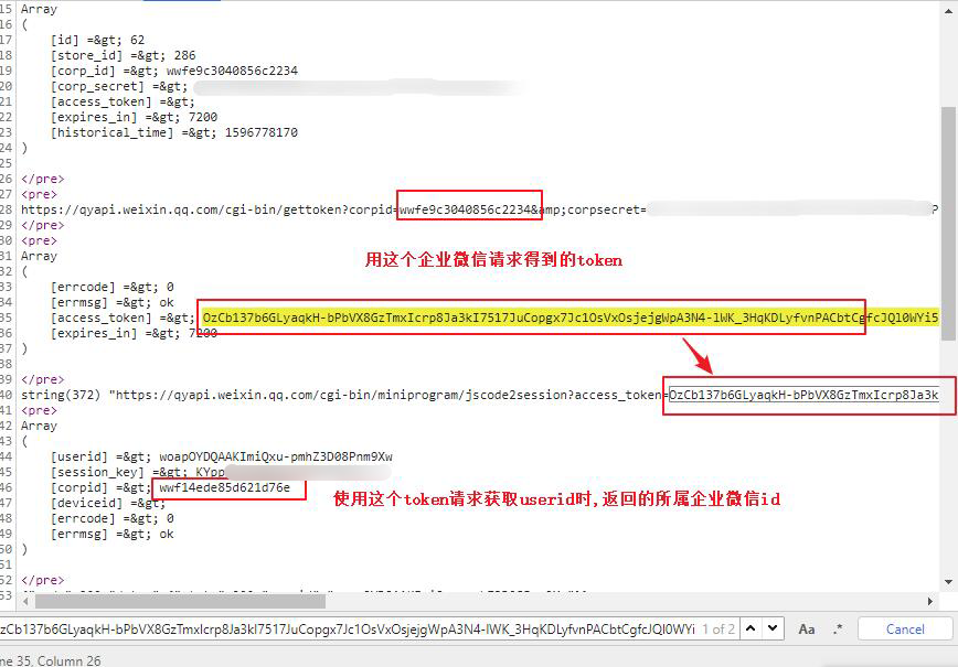 一开始使用企业微信id : wwfe9c3040856c2234 获取access_token,使用这个access_token通过code2Session获取用户信息的时候,返回数据中的企业微信id为 : wwf14ede85d621d76e,与一开始请求的不一样???