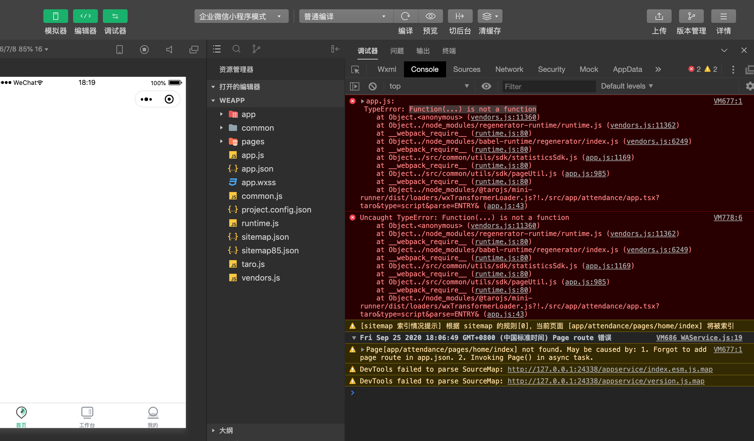 你好,看起来是小程序调用的接口不存在报错,请问跑的是什么接口