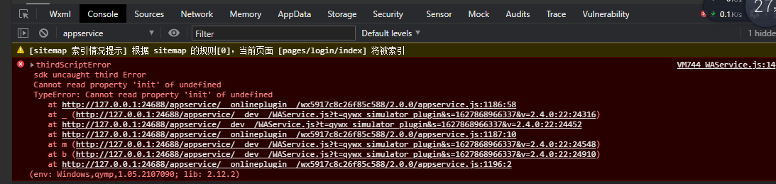 在微信开发者工具调试企业微信小程序的时候,一直报这个错误