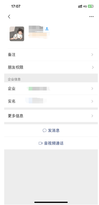 如果想打开微信,显示某个企业名片,就是图片这个名片页面,没有好友的可以点击添加好友。这样。