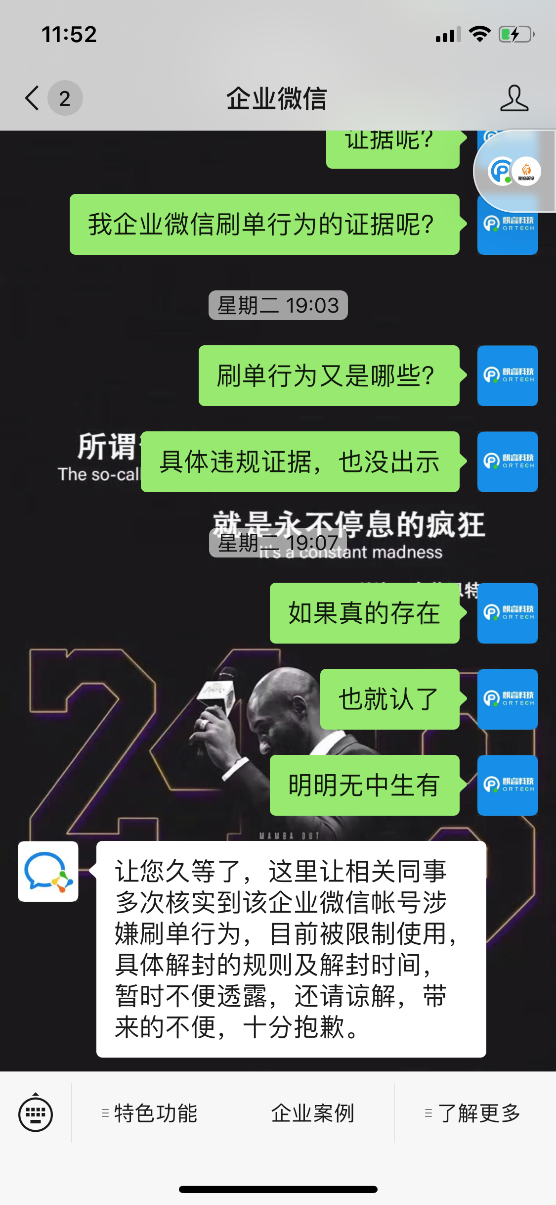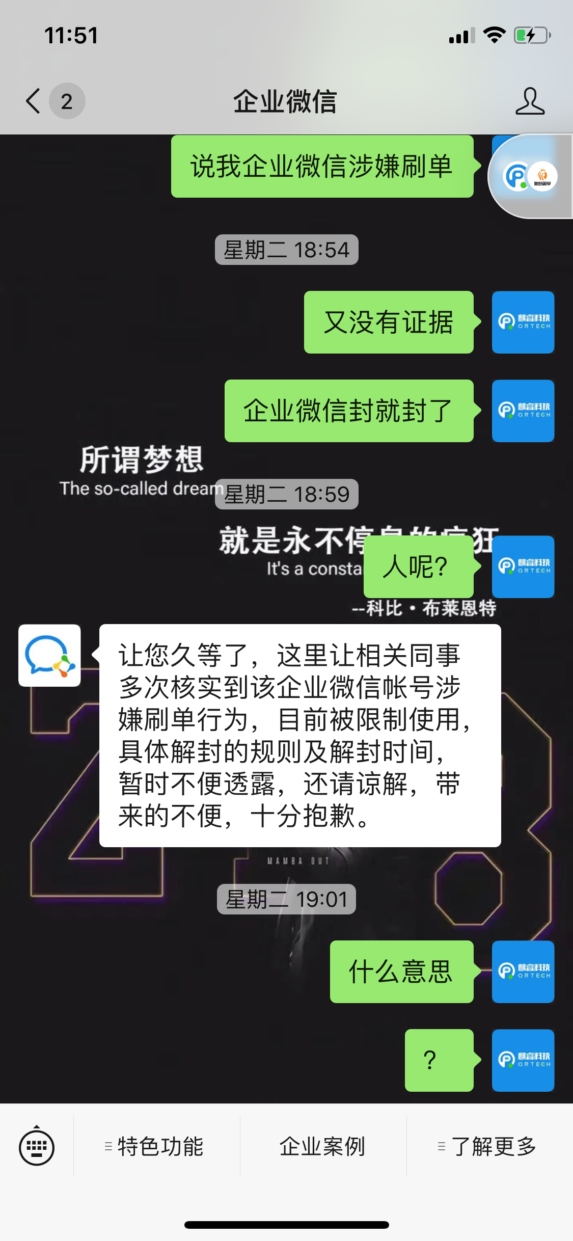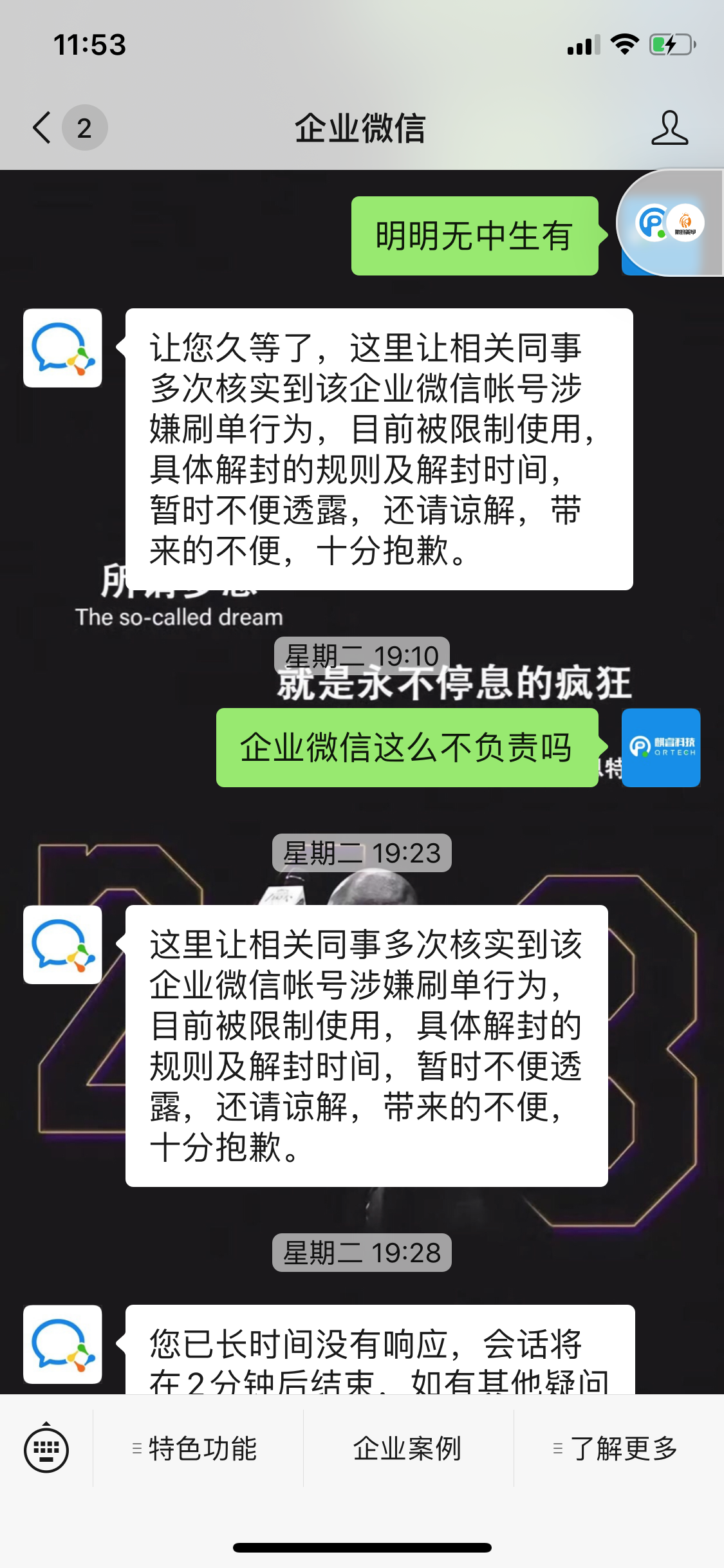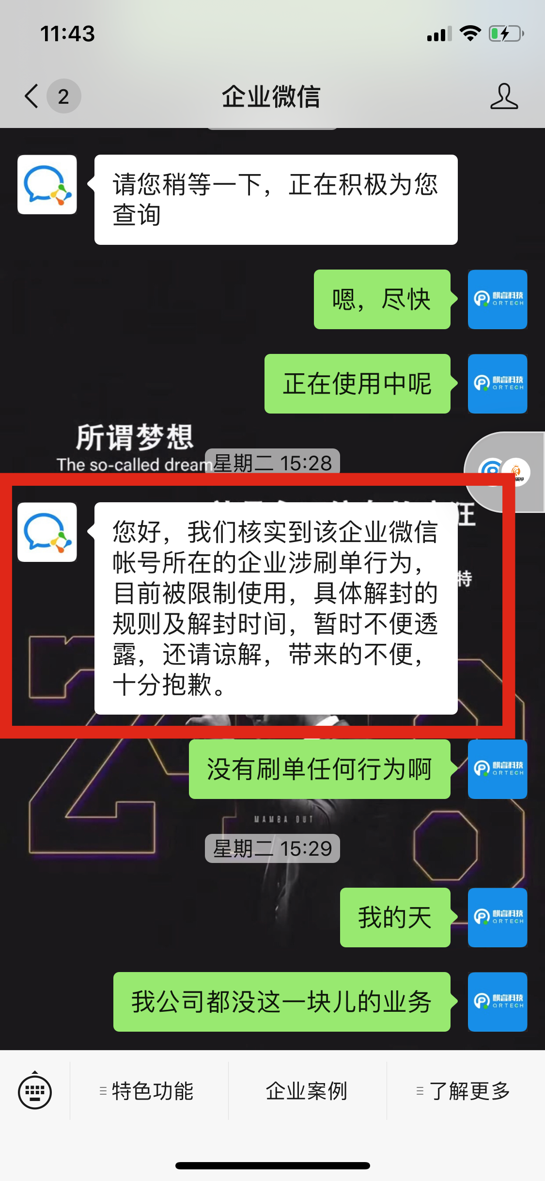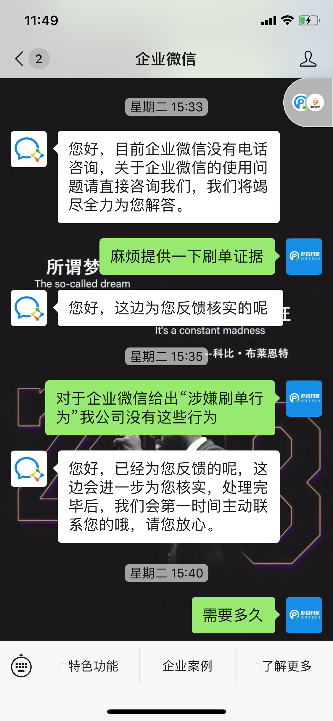 第二:根据用户举报,说我涉嫌刷单行为,企业微信官方为什么不做详细核实?