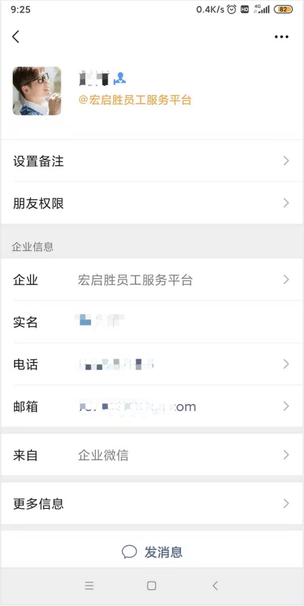 通过企业微信对话框页面向别人推荐名片的时候,是固定的格式,如图二;
