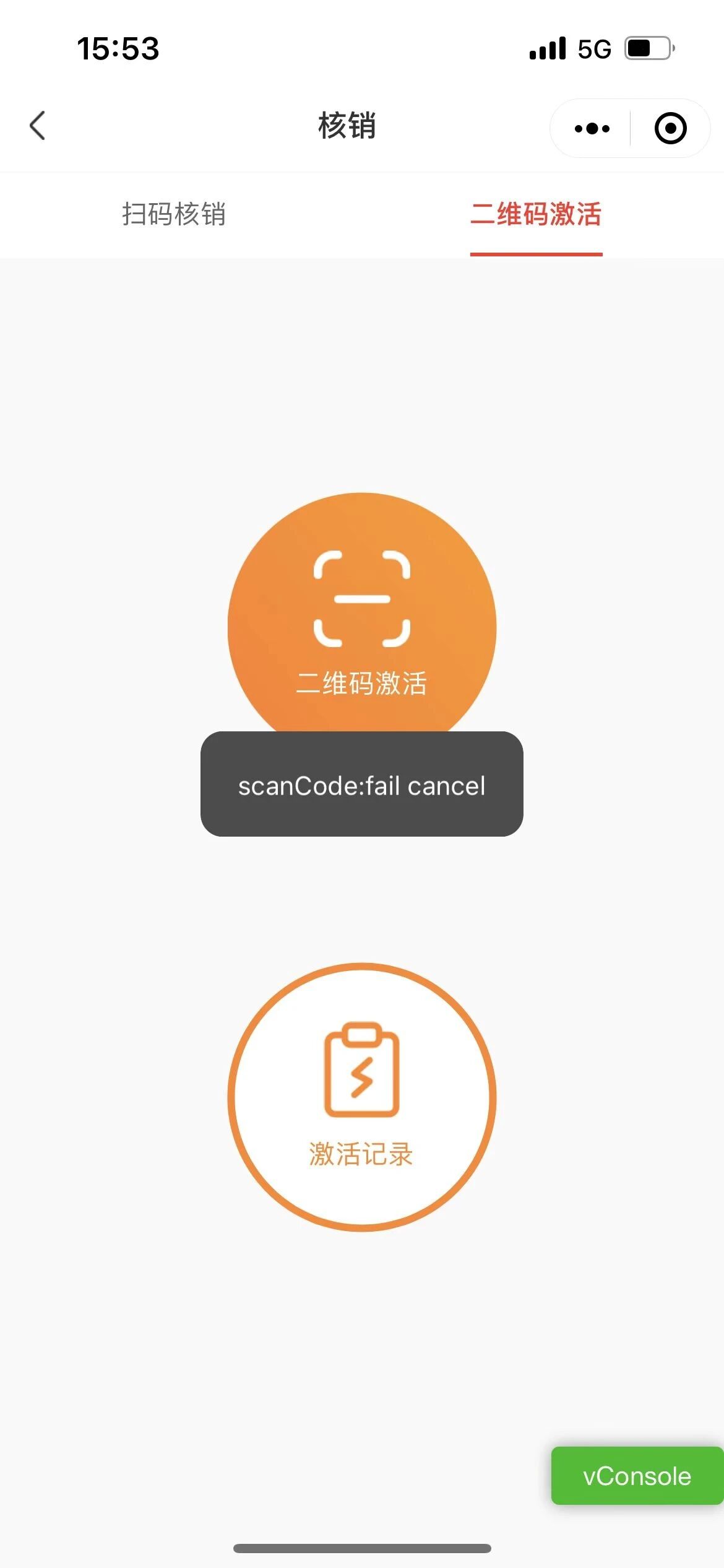 fail(res){ wx.showToast({ title: res.errMsg, icon: 'none', duration: 2000 }) },扫描小程序码一直没有反应,点击取消之后页面提示