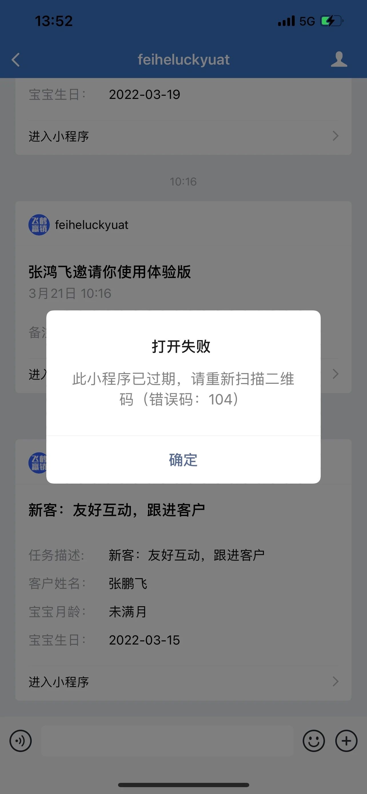 企业微信小程序在扫码更新版本后,点击体验版消息,提示小程序已过期。需多次更新点击才会正常进入小程序