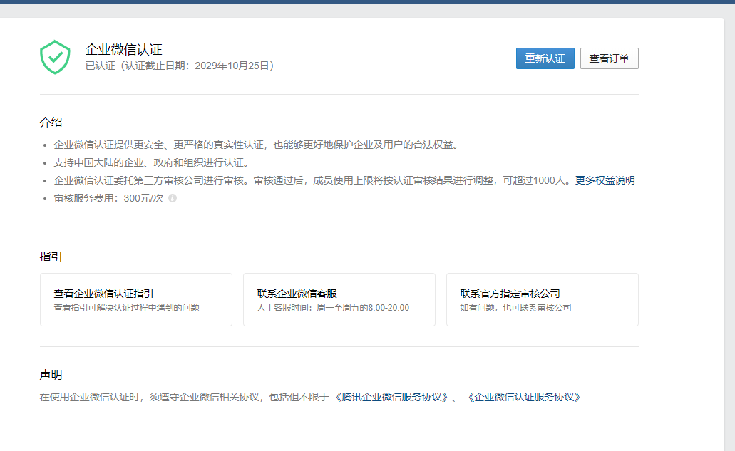 文档上显示: 分享接口仅激活的成员数超过200人且已经认证的企业才可在微信上调用。