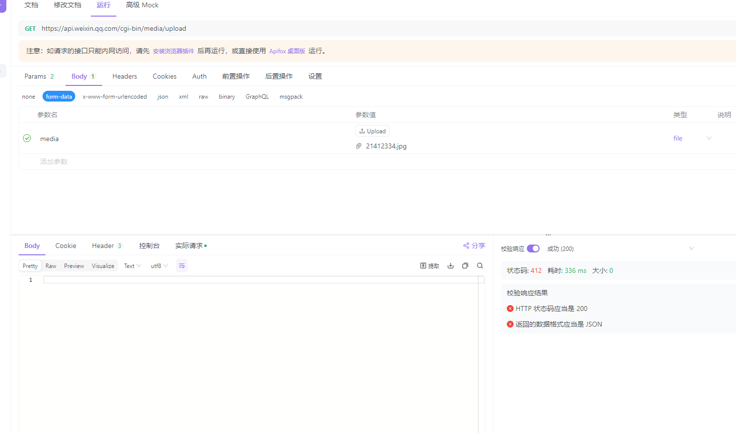 接口使用的是 https https://api.weixin.qq.com/cgi-bin/media/upload?access_token=ACCESS_TOKEN&type=TYPE