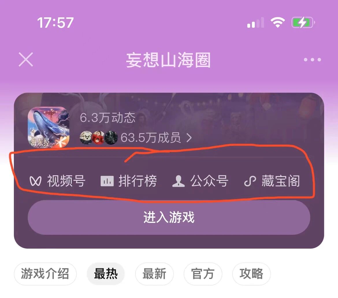 微信游戏圈头部菜单,如图中红框内的菜单项如何配置?