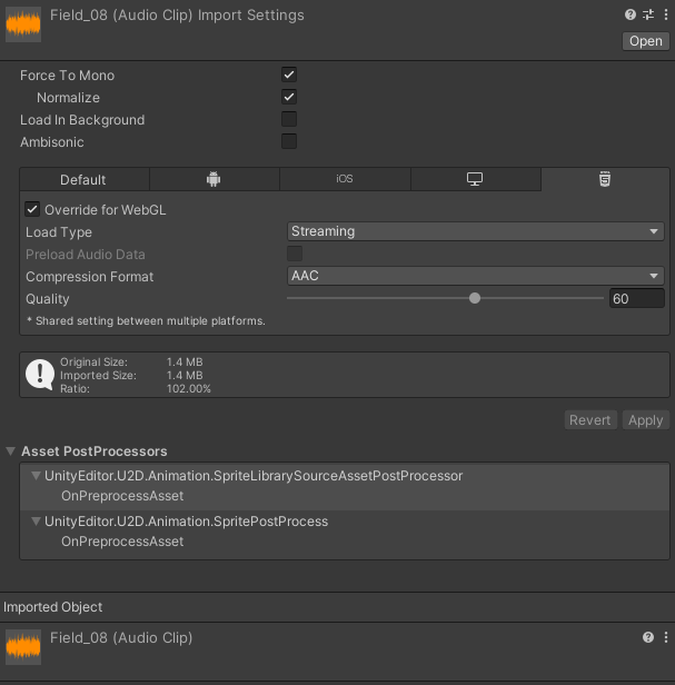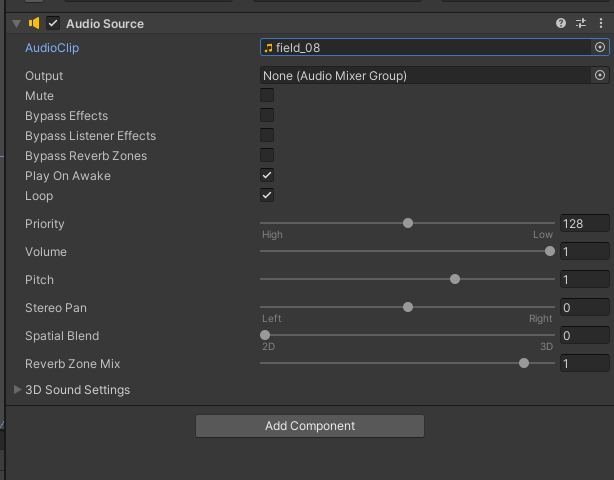 使用的是Unity自带的AudioSource进行播放,并且代码这边没有做任何的修改,因为测试的时候我是直接使用预制体播放音频的。