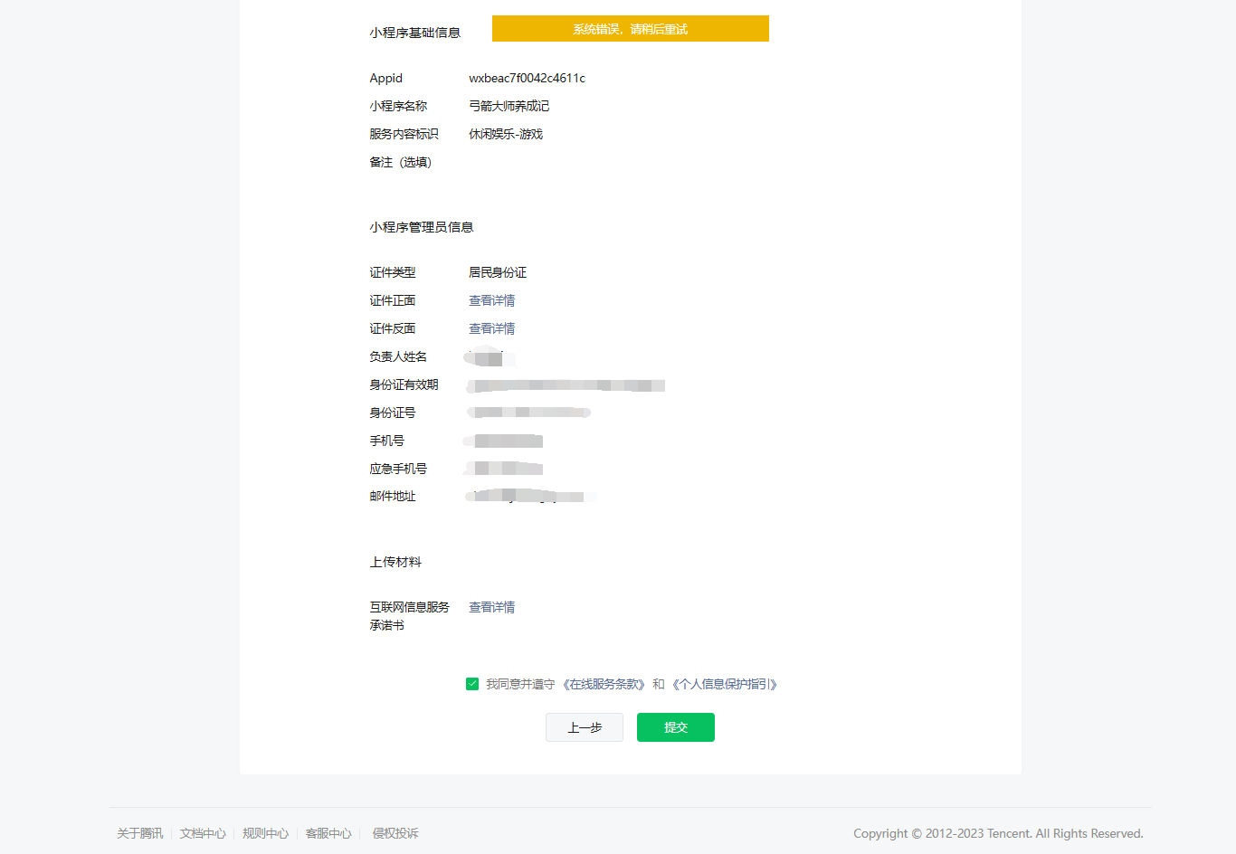 公司几款有小游戏,其他游戏都备案提交成功了,就这一款在提交备案就提示系统错误,请稍后重试,已经过了一个星期,换了几个浏览器还是这样。