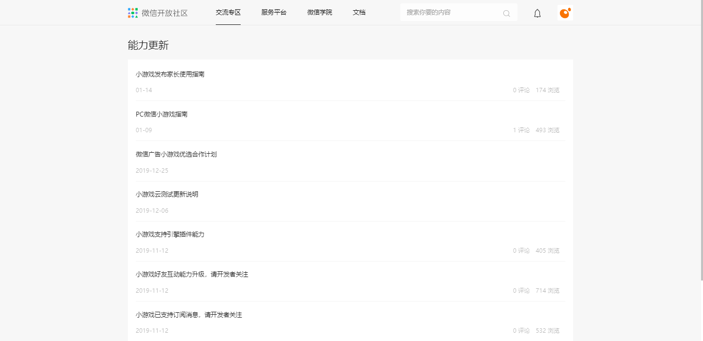 随着小游戏能力的不断增加,目前社区首页「能力更新」版块已同步更新大量新能力,各项新能力内容介绍融合在一个列表中,导致开发者触达率和使用率不高。